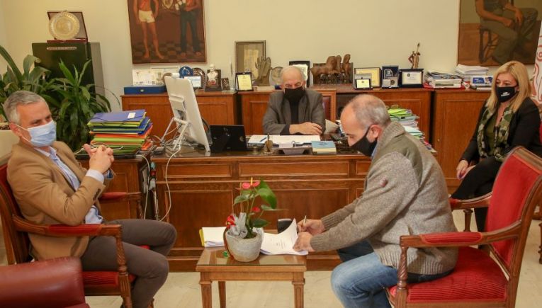Τη σύμβαση υπέγραψε ο Δήμαρχος Ηρακλείου, κ. Βασίλης Λαμπρινός με τον εκπρόσωπο της αναδόχου εταιρίας, παρουσία του Aντιδημάρχου Τεχνικών Έργων,  κ. Γιάννη Αναστασάκη και της Αντιδημάρχου Οικονομικών και Διοικητικών Υπηρεσιών, κας Μαρίας Καναβάκη.