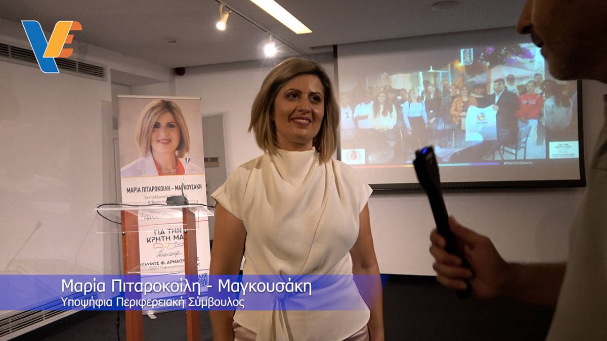 Την κεντρική προεκλογική της ομιλία πραγματοποίησε το βράδυ της Πέμπτης (28/9) σε κεντρικό ξενοδοχείο του Ηρακλείου, η Μαρία Πιταροκοίλη – Μαγκουσάκη, υποψήφια Περιφερειακή Σύμβουλος Νομού Ηρακλείου με το συνδυασμό «Για την Κρήτη μας» του Σταύρου Αρναουτάκη.