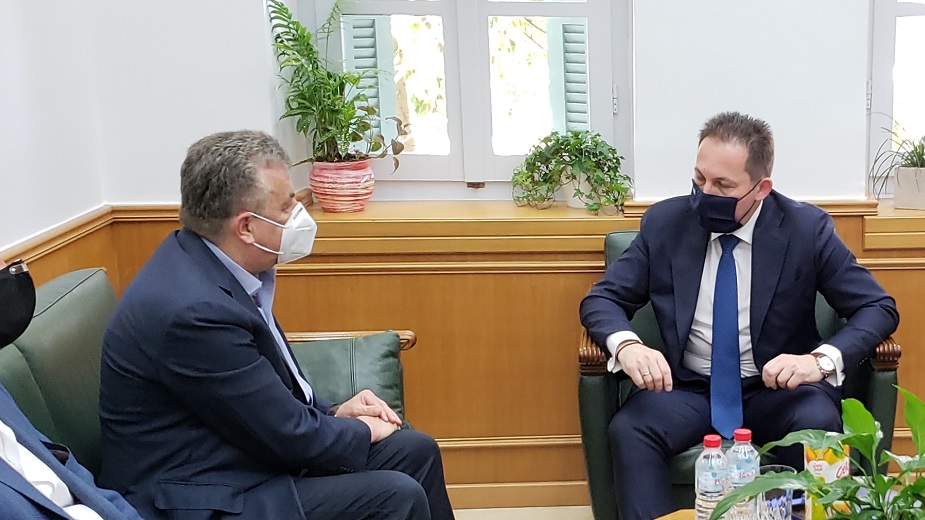 Η αρχή των επαφών του έγινε στην Περιφέρεια Κρήτης, στο Ηράκλειο. Εκεί συζήτησε με τον κ. Σταύρο Αρναουτάκη τα δύο αυτά θέματα, αλλά και άλλα επιμέρους ζητήματα.