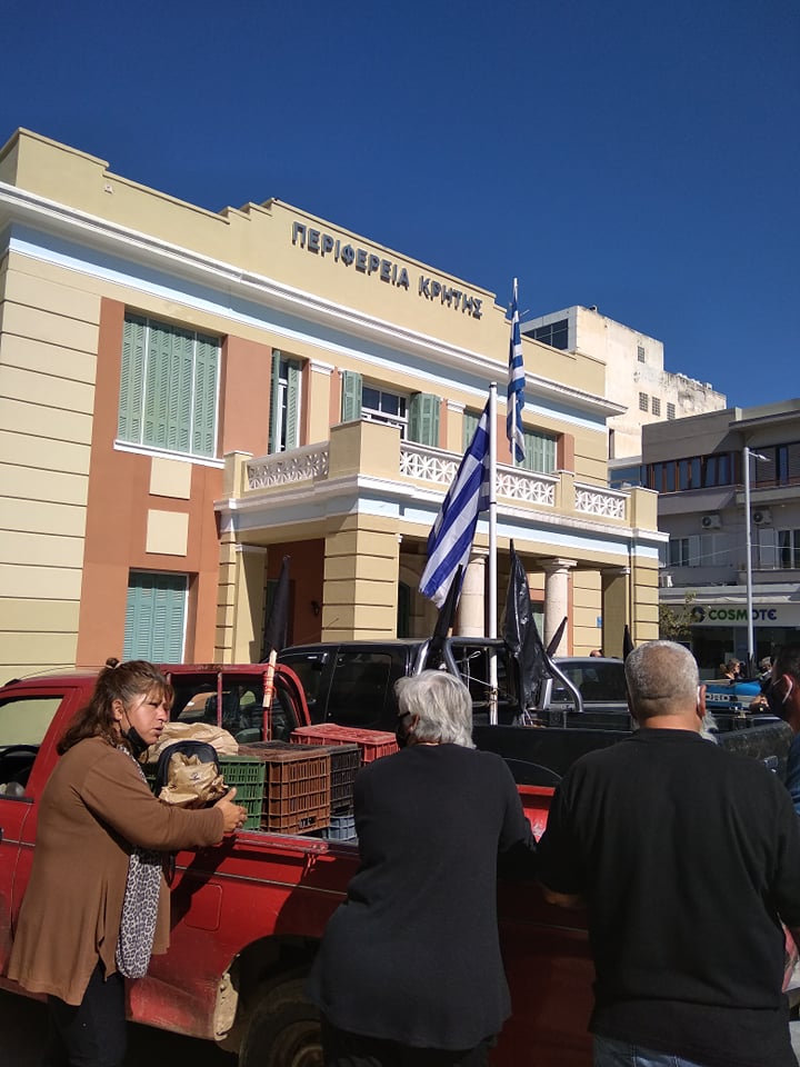 Μάλιστα, οι παραγωγοί του Ηρακλείου πραγματοποιουν μηχανοκίνητη πορεία στο κέντρο της πόλης ενώ θα καταθέσουν ψήφισμα στον περιφερειάρχη Κρήτης και θα μεταβούν στη συνέχεια στην Αποκεντρωμένη Διοίκηση.