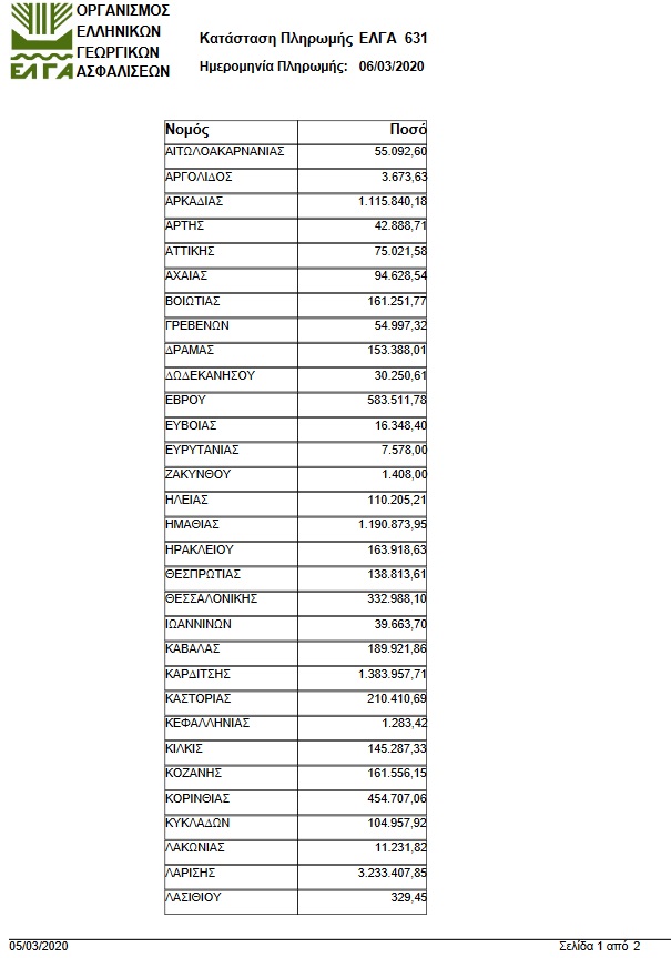 Tην πλήρη λίστα για τις αποζημιώσεις για φυσικό ή ζωικό κεφάλαιο, ανακοίνωσε ο ΕΛΓΑ.