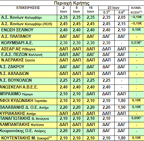 Ο ενημερωμένος πίνακας με τις τιμές, από το ΣΕΔΗΚ, είναι αποκαλυπτικός…