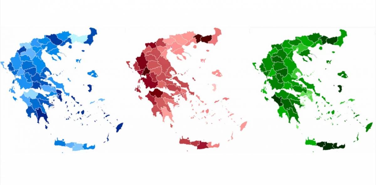 Οι χάρτες των κομμάτων -Τα υψηλότερα και τα χαμηλότερα ποσοστά