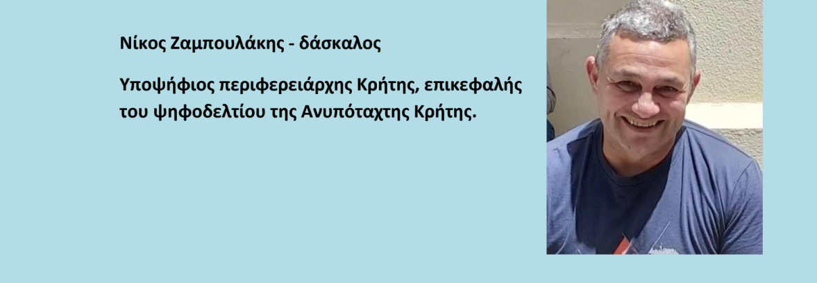 Για όλα αυτά που δεν αντέχονται πια σε αυτόν τον τόπο… Για όλα αυτά που σε κάνουν να οργίζεσαι… Για όλα αυτά που βλέπεις κι εσύ όπως κι εμείς, αλλά και για όλα αυτά που μπορούμε να αντιπαλέψουμε μαζί,σε  καλούμε στις εκλογές της 8ης Οκτώβρη να στηρίξεις το ψηφοδέλτιο της Ανυπόταχτης Κρήτης – Αντικαπιταλιστική Αριστερή Παρέμβαση για το περιφερειακό συμβούλιο, ώστε πιο ισχυροί να προβάλλουμε τα εργατικά και λαϊκά συμφέροντα και να επιβάλλουμε κατακτήσεις. Για να αποκαλύπτουμε την ταξική ουσία, τους σχεδιασμούς και τη διαπλοκή του τοπικού πολιτικού συστήματος και της περιφερειακής αρχής.