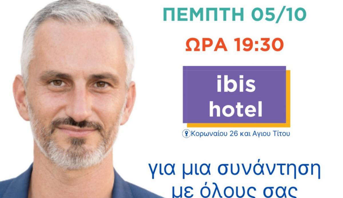Η εκδήλωση θα πραγματοποιηθεί την Πέμπτη 5 Οκτωβρίου στις 19.30 το απόγευμα στο ξενοδοχείο «Ibis Styles Heraklion».