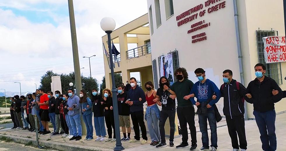 Συμβολικό αποκλεισμό στην πρυτανεία του Πανεπιστημίου Κρήτης στο Ηράκλειο πραγματοποίησαν φοιτητές και φοιτήτριες του Πανεπιστημίου.