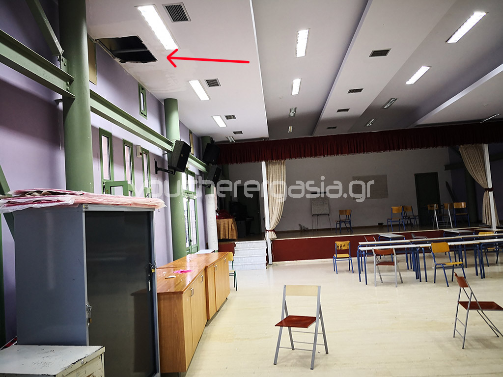 Απίστευτο: Καπετανάκειο – Τρύπησε η οροφή στην αίθουσα πολλαπλών χρήσεων! (PHOTOS)