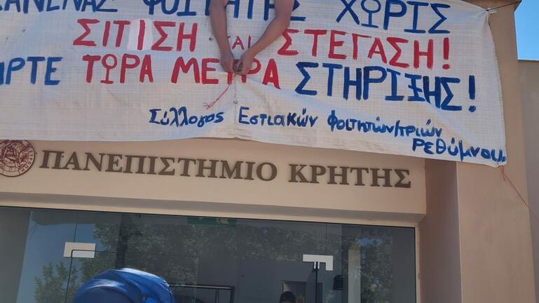 Η κινητοποίηση έγινε από το σύλλογο εστιακών φοιτητών του Ρεθύμνου καθώς το πανεπιστήμιο Κρήτης δεν μπορεί να καλύψει τις στεγαστικές τους ανάγκες.