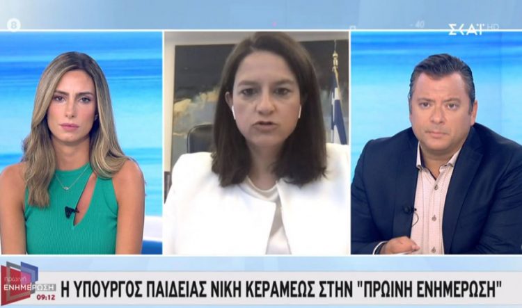 Για τα μέτρα με τα οποία θα λειτουργήσουν φέτος τα σχολεία όλων των βαθμίδων, τη χρήση μάσκας αλλά και για την διαχείριση κρούσματος κορωνοϊού στις σχολικές μονάδες, μίλησε στην τηλεόραση του ΣΚΑΪ η υπουργός Παιδείας, Νίκη Κεραμέως.