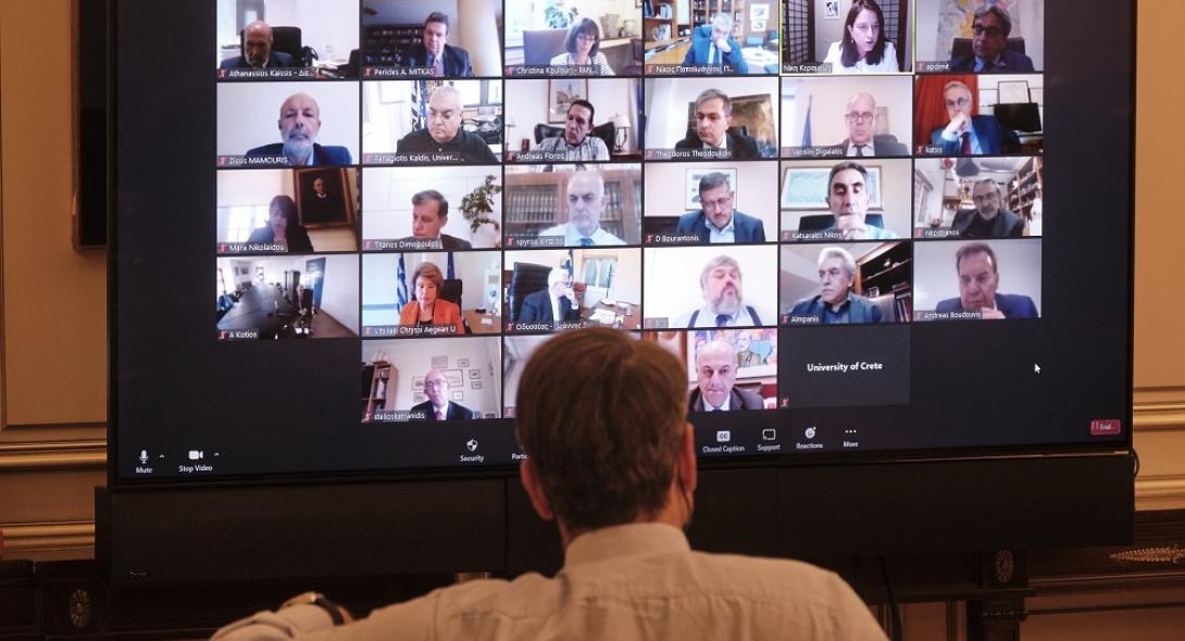 Από την πλευρά της κυβέρνησης στην τηλεδιάσκεψη συμμετείχαν επίσης ο Υπουργός Προστασίας του Πολίτη Μιχάλης Χρυσοχοΐδης, η Υπουργός Παιδείας και Θρησκευμάτων Νίκη Κεραμέως, ο Υπουργός Δικαιοσύνης Κωνσταντίνος Τσιάρας, ο Υπουργός Επικρατείας Γιώργος Γεραπετρίτης, ο Υφυπουργός Παιδείας & Θρησκευμάτων αρμόδιος για θέματα Ανώτατης Εκπαίδευσης Βασίλης Διγαλάκης, ο Υφυπουργός παρά τω Πρωθυπουργώ αρμόδιος για τον Συντονισμό του Κυβερνητικού Έργου Άκης Σκέρτσος, ο Υφυπουργός παρά τω Πρωθυπουργώ και Κυβερνητικός Εκπρόσωπος Στέλιος Πέτσας, ο Γενικός Γραμματέας του Πρωθυπουργού Γρηγόρης Δημητριάδης, ο Γενικός Γραμματέας Ανώτατης Εκπαίδευσης, Απόστολος Δημητρόπουλος, ο Διευθυντής του Οικονομικού Γραφείου του Πρωθυπουργού Αλέξης Πατέλης και η Αναπληρώτρια Κυβερνητική Εκπρόσωπος, Αριστοτελία Πελώνη. Στην τηλεδιάσκεψη μετείχε επίσης ο Πρόεδρος της Εθνικής Αρχής Ανώτατης Εκπαίδευσης (ΕΘΑΑΕ), Περικλής Μήτκας.