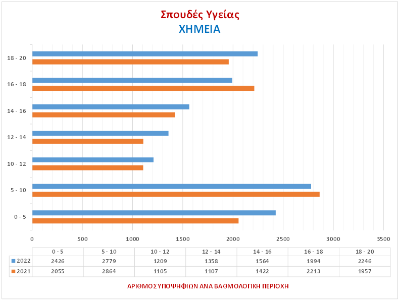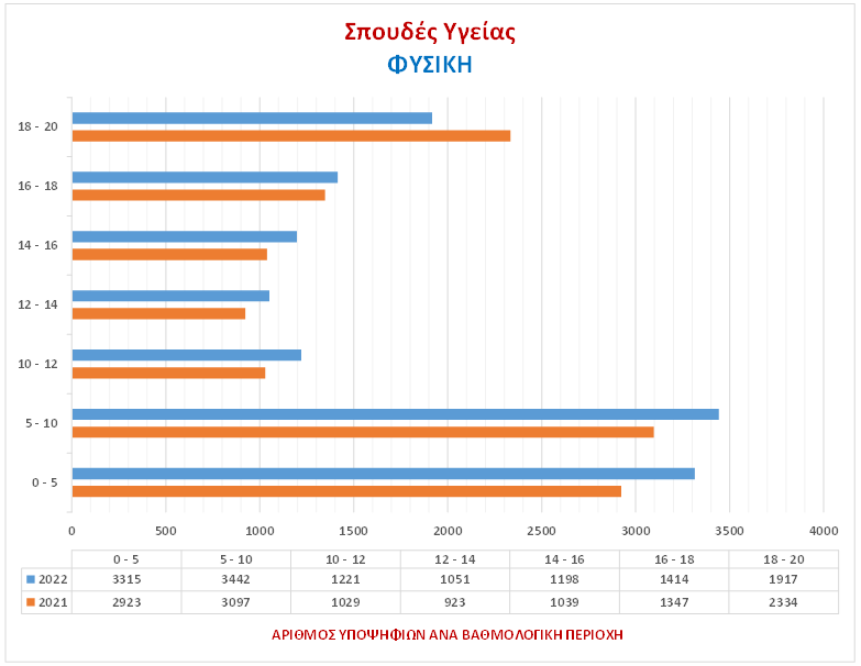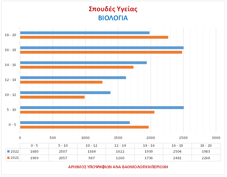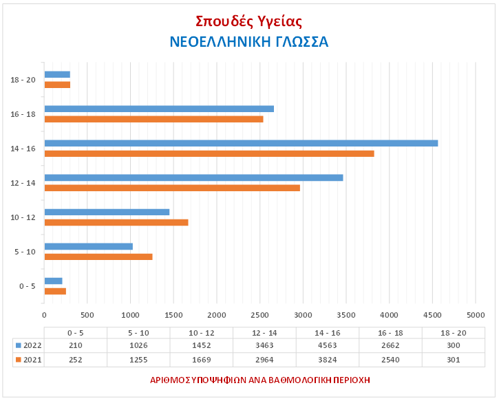 Στα γραφήματα αποτυπώνεται ο αριθμός των Υποψηφίων ανά βαθμολογική περιοχή για το 2022 & το 2021.
