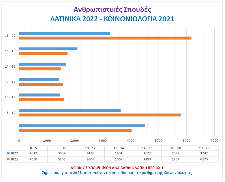 Πέρυσι υπήρχε η Κοινωνιολογία, ενώ φέτος επανήλθαν τα Λατινικά, για αυτό αποτυπώνονται τα δυο μαθήματα στο τρίτο διάγραμμα.