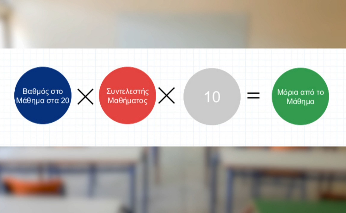 Ο κ. Στρατηγάκης εξήγησε με παραδείγματα πώς λειτουργούν οι συντελεστές βαρύτητας ανά μάθημα, παρουσιάζοντας τους σχετικούς τύπους βάσει των οποίων γίνεται η μοριοδότηση.