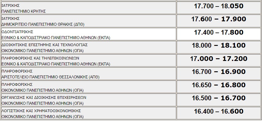 Το τμήμα Διοικητικής Επιστήμης και Τεχνολογίας του Οικονομικού Πανεπιστημίου Αθήνας (ΟΠΑ) μαζί με τα τμήματα Πληροφορικής του ΕΚΠΑ, του ΑΠΘ και του ΟΠΑ θα διεκδικήσουν τις πρώτες θέσεις στη σειρά των τμημάτων με τις υψηλότερες βάσεις του Πεδίου. Το Τμήμα Διοικητικής Επιστήμης και Τεχνολογίας αναμένεται να απαιτήσει περίπου 18.000 μόρια ενώ πάνω από 16.500 μόρια αναμένεται να απαιτήσουν τα τρία άλλα τμήματα Πληροφορικής.