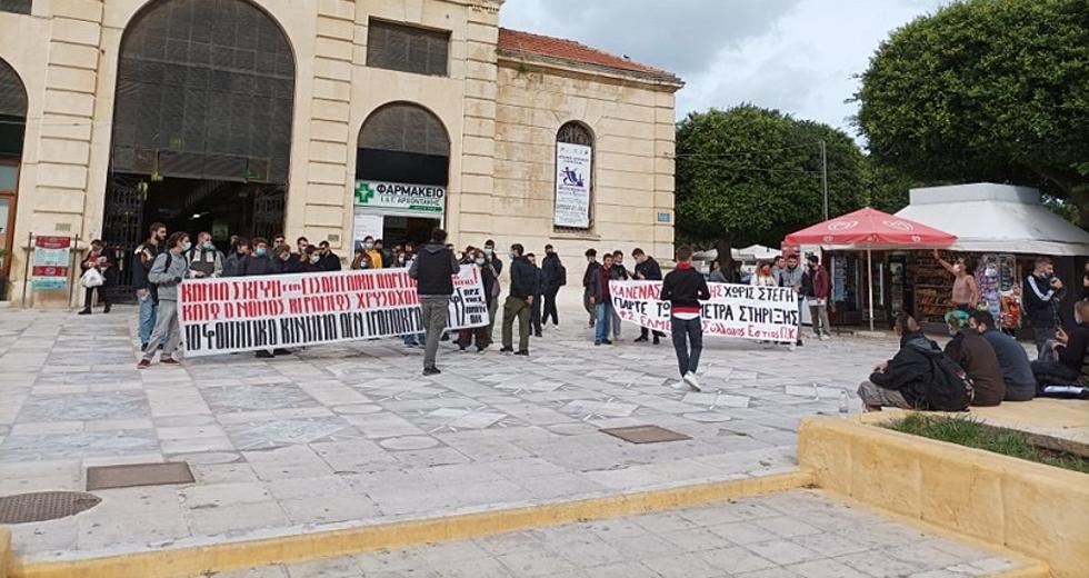 Η κινητοποίηση πραγματοποιήθηκε το πρωί της Πέμπτης στην πλατεία της Δημοτικής Αγοράς Χανίων από τους φοιτητές Αρχιτεκτονικής και ΗΜΜΥ (Ηλεκτρολόγων) του Πολυτεχνείου Κρήτης αλλά και φοιτητές από τον ΕΛΜΕΠΑ.