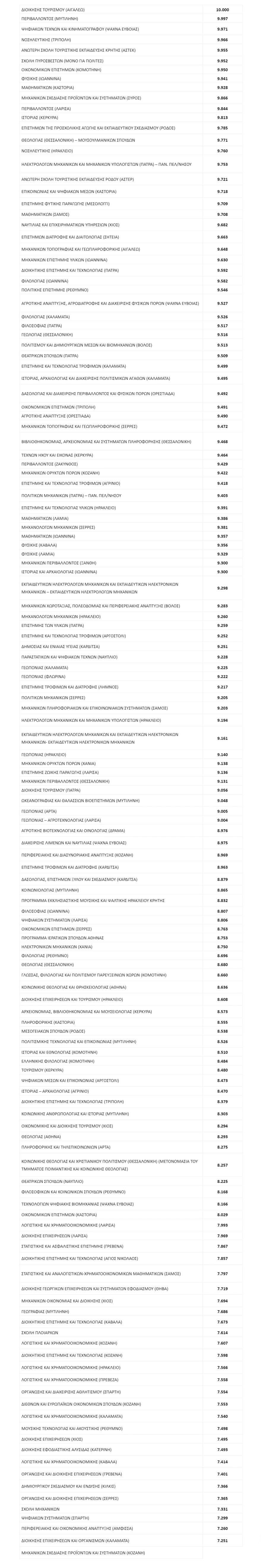 Δείτε στον πίνακα που ακολουθεί σε ποιες σχολές πέρασαν υποψήφιοι που έγραψαν κάτω από δέκα μέ βάση στα στοιχεία από τα ΓΕΛ.