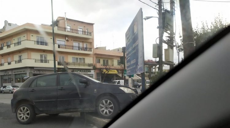 Ανέβηκε στο… στηθαίο – Τροχαίο στο Ηράκλειο (φωτο)