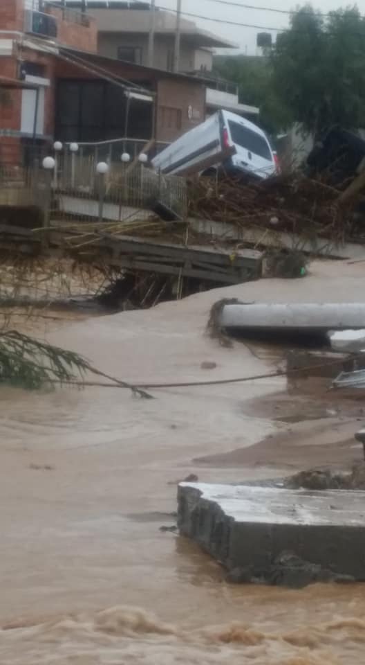 Πολλοί δρόμοι έχουν γίνει ποτάμια ενώ σε διάφορα σημεία γίνονται κατολισθήσεις και χρειάζεται πολλή προσοχή από τους οδηγούς