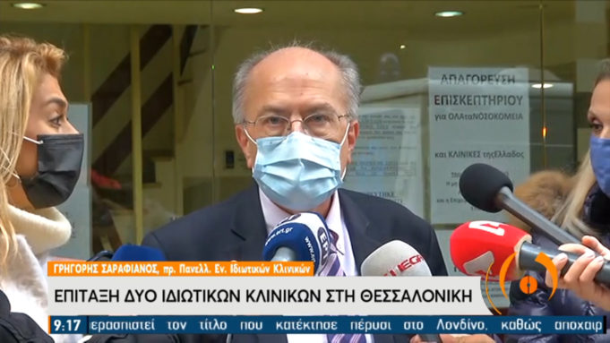 Σε δηλώσεις του στην Θεσσαλονίκη ο Γρηγόρης Σαραφιανός πρόεδρος της Ένωσης Ιδιωτικών Κλινικών ξεκαθάρισε από την πλευρά του οι ιδιοκτήτες ιδιωτικών κλινικών δεν αρνούνται την προσφορά στο σύστημα υγείας αλλά «αρνηθήκαμε να υποδεχθούμε ασθενείς με κορωνοϊό, διότι οι κτιριακές μας υποδομές είναι τέτοιες που δεν επιδέχονται διαχωρισμό COVID και NO COVID.