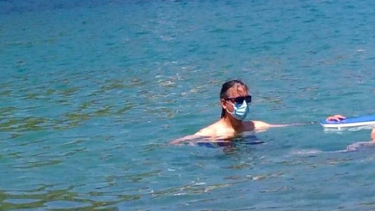 Eκανε μπάνιο στη θάλασσα με χειρουργική μάσκα!