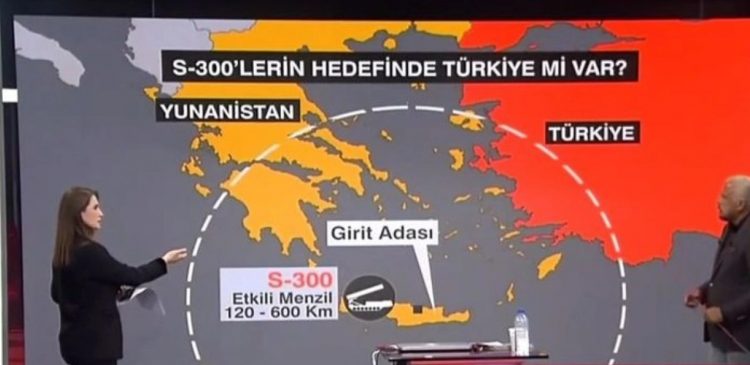 Συνεχίζεται η προπαγάνδα των τουρκικών μέσων ενημέρωσης κατά της Ελλάδας, με αφρομή, αυτή τη φορά, την παρουσία S-300 στην Κρήτη. Μάλιστα, το CΝΝ Turk έφτασε στο σημείο να κάνει λόγο ακόμα και για εγκατάσταση πυρηνικών όπλων στο νησί.