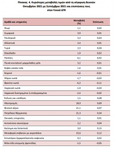 Η αύξηση του Γενικού ΔΤΚ κατά 1,5% τον μήνα Οκτώβριο 2021, σε σύγκριση με τον αντίστοιχο Δείκτη του Σεπτεμβρίου 2021,