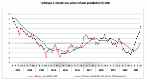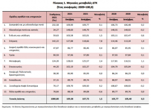Ο μέσος ΕνΔΤΚ του δωδεκαμήνου Νοεμβρίου 2020 – Οκτωβρίου 2021, σε σύγκριση με τον αντίστοιχο Δείκτη του δωδεκαμήνου Νοεμβρίου 2019 – Οκτωβρίου 2020, παρουσίασε μείωση 0,5% έναντι μείωσης 0,8% που σημειώθηκε κατά την αντίστοιχη σύγκριση του δωδεκαμήνου Νοεμβρίου 2019 – Οκτωβρίου 2020 με το δωδεκάμηνο Νοεμβρίου 2018 – Οκτωβρίου 2019