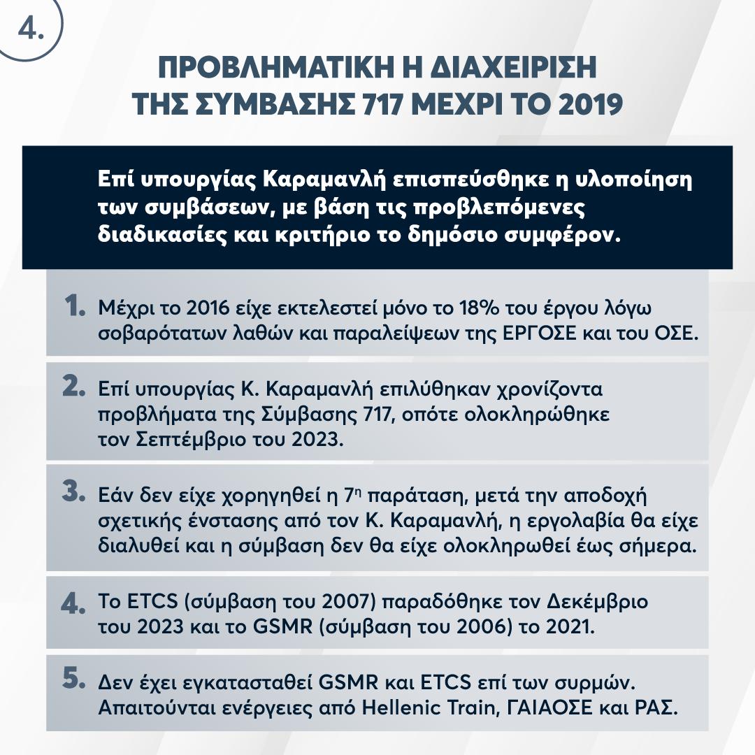 5. Η υλοποίηση των συμβάσεων για τα αυτοματοποιημένα συστήματα επισπεύστηκε σημαντικά επί Υπουργίας Καραμανλή, ενώ ειδικά το έργο της 717 θα είχε καθυστερήσει κατά πολύ ακόμα, αν δεν είχε δοθεί παράταση αλλά είχε διαλυθεί και επαναπροκηρυχθεί.