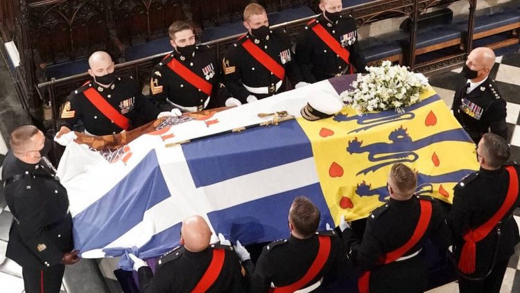Στην κηδεία του δούκα του Εδιμβούργου, πρίγκιπα Φιλίππου, το φέρετρο ήταν σκεπασμένο με ένα λάβαρο που έφερε το οικόσημό του και στο οποίο ξεχώριζε ο ελληνικός σταυρός.