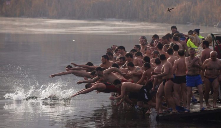 Στο Δήμο Αργους Ορεστικού Καστοριάς 13 νεαροί αψήφησαν τοι κρύο και έπεσαν στα παγωμένα νερά του ποταμού Αλιάκμονα για να πιάσουν το σταυρό.