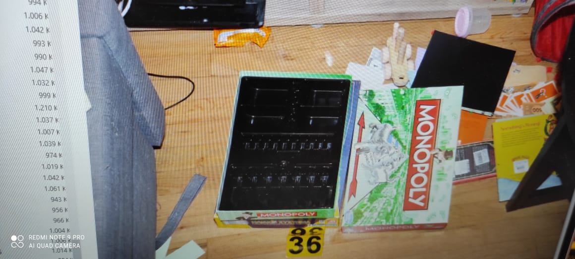 Το τεκμήριο με τον αριθμό 36 ήταν το στοιχεία εκείνο που προβλημάτισε έντονα τους αστυνομικούς που έσπευσαν να χειριστούν την υπόθεση της στυγερής δολοφονίας στα Γλυκά Νερά, με θύμα την 20χρονη Καρολάιν και καθ’ ομολογία δράστη τον 32χρονο σύζυγό της. Πρόκειται για τη φωτογραφία του δημοφιλούς επιτραπέζιου παιχνιδιού Monopoly, στο κουτί του οποίου ο πιλότος είχε ισχυριστεί στους αστυνομικούς ότι έκρυβε 9.500 ευρώ, τα οποία απέσπασαν οι υποτιθέμενοι ληστές. Το συγκεκριμένο τεκμήριο, ωστόσο, ήταν αυτό που αποδείκνυε ότι η ληστεία ήταν σκηνοθετημένη και μάλιστα ελλιπώς.