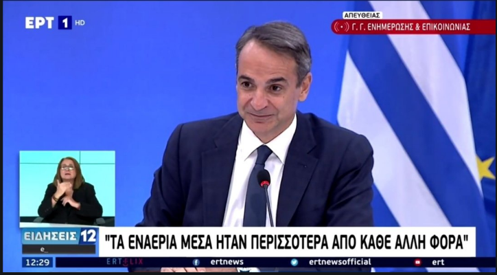 Ο πρωθυπουργός στάθηκε και στην συμβολή των Μέσων Μαζικής Επικοινωνίας. «Ευχαριστώ τα ΜΜΕ και ειδικά τους ρεπόρτερ που βρέθηκαν στο πεδίο για την αντικειμενική κάλυψη των γεγονότων. Βοήθησαν την κοινή γνώμη και εμάς να αντιληφθούμε τι συμβαίνει. Βρίσκομαστε στην 10η ημέρα μιας πρωτοφανούς επίθεσης της φύσης που τροφοδότησε ένας πρωτοφανής καύσωνας και μία πολύμηνη ξηρασία. Κατόπιν της βοήθειας, όλων που βρέθηκαν στην πρώτη γραμμή, μπορούμε σήμερα να είμαστε πιο αισιόδοξοι» είπε και συμπλήρωσε. «Είμαστε όμως στα μέσα Αυγούστου και μας περιμένουν ακόμη δύσκολες ημέρες. είμαστε εδώ για να μιλήσουμε για όλα, πόσο θωρακισμένοι ήμασταν, αλλά και τι λάθη κάνουμε, πως οργανώσαμε την Πολιτική Προστασία. Η κλιματική κρίση είναι εδώ και μας υποδεικνύει πως όλα πρέπει να αλλάξουν, από την οικονομία έως τη λειτουργία του Κράτους και την καθημερινότητα. Τα δεδομένα απαιτούν τολμηρές λύσεις για τις οποίες είμαι έτοιμος. Εξ αρχής κυρίαρχος στόχος μας είναι η προστασία της ζωής, των ανθρώπων και των ζωών. Ακολουθεί η προστασία των σπιτιών των κρίσιμων υποδομών και του περιβάλλοντος. Η κλιματική κρίση επιβάλλει πλέον μία δραστικά διαφορετική αντιμετώπιση. Οι νέες συνθήκες δικαιώνουν την δική μου επιλογή να καταστεί το περιβάλλον εθνικός στόχος προτεραιότητας. Η απολιγνιτοποίηση, οι πόροι του Ταμείου Ανάκαμψης και το νέο ΕΣΠΑ μας δίνουν πολύ ισχυρά χρηματοδοτικά εργαλεία. Και με το νέο κλιματικό νόμο που θα ψηφιστεί εντός των επομένων μηνών. Η Ελλάδα θα καταθέσει στα διεθνή φόρα τολμηρές προτάσεις. Στη MED9 θα καταστεί η αντιμετώπιση της κλιματικής αλλαγής κυρίαρχο θέμα. Φιλοδοξία μου είναι να υπογράψουμε την Διακήρυξη των Αθηνών για την αντιμετώπιση της κλιματικής αλλαγής στη Μεσόγειο».
