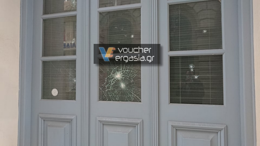 Χαρακτηριστικές είναι οι φωτογραφίες του Voucher Ergasia από κατάστημα τραπέζης που βρίσκεται στο κέντρο της πόλης στο οποίο προκάλεσαν σοβαρές ζημιές στο ATM και στις τζαμαρίες.