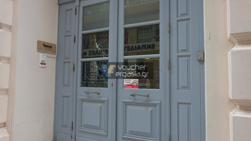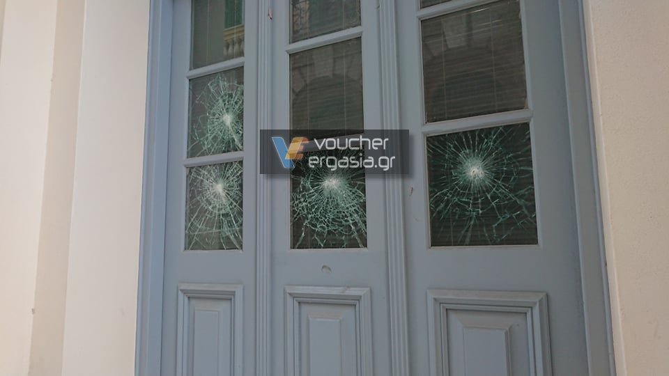 Χαρακτηριστικές είναι οι φωτογραφίες του Voucher Ergasia από κατάστημα τραπέζης που βρίσκεται στο κέντρο της πόλης στο οποίο προκάλεσαν σοβαρές ζημιές στο ATM και στις τζαμαρίες.