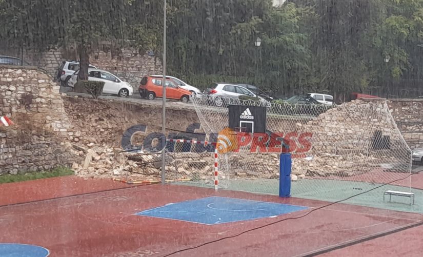 Κέρκυρα: Κατέρρευσε τοίχος σε ανοιχτό γήπεδο λόγω της κακοκαιρίας Μπάλλος