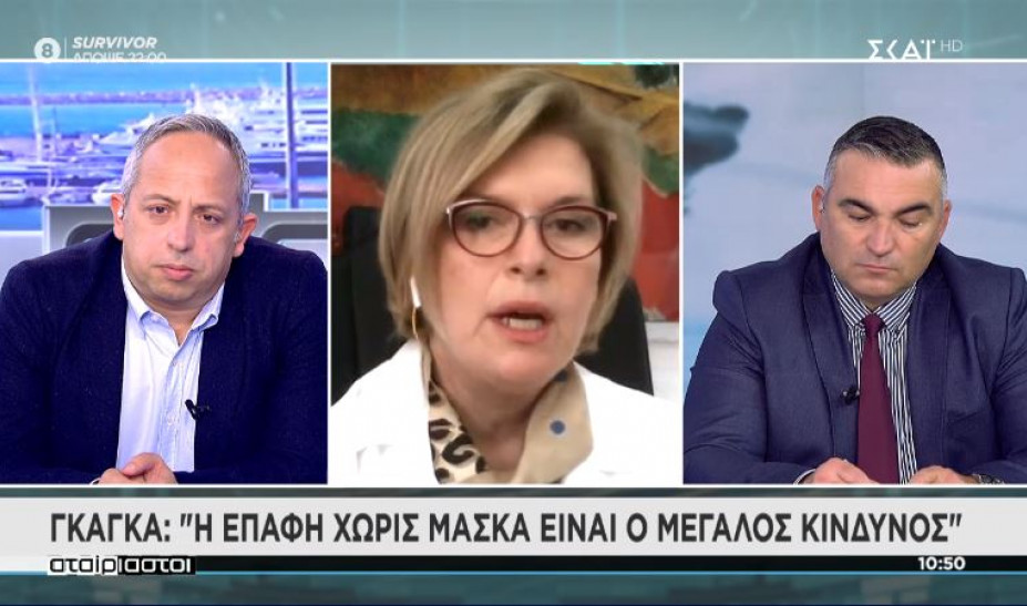 Η κ. Γκάγκα σημείωσε ότι στο νοσοκομείο φτάνουν πολίτες που βρέθηκαν σε μαζέματα 10 ατόμων στις γιορτές χωρίς μάσκες. Αντίθετα κατά τη μεγάλη συγκέντρωση έξω από τον Άρειο Πάγο κατά την καταδίκη της Χρυσής Αυγής, ενώ οι επιστήμονες ανησυχούσαν, ο συνωστισμός δεν μετατράπηκε σε έξαρση κρουσμάτων καθώς πάρα πολύς κόσμος φορούσε μάσκα και βρίσκονταν σε εξωτερικό χώρο.