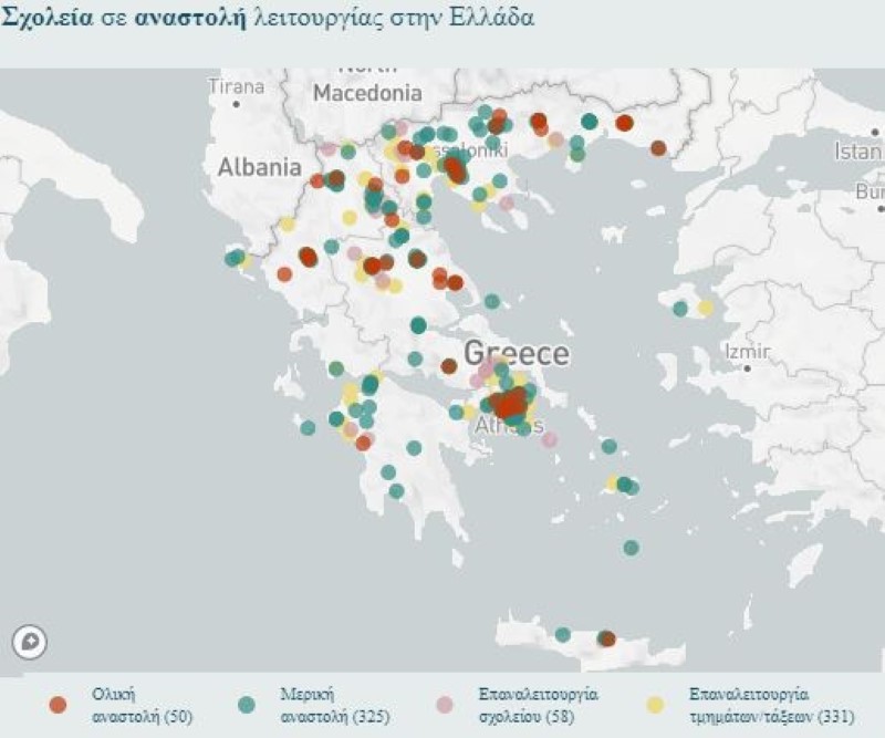 Δείτε τον χάρτη του iMEdD Lab για τα σχολεία και τα τμήματα που τελούν σε καθεστώς αναστολής λειτουργίας: