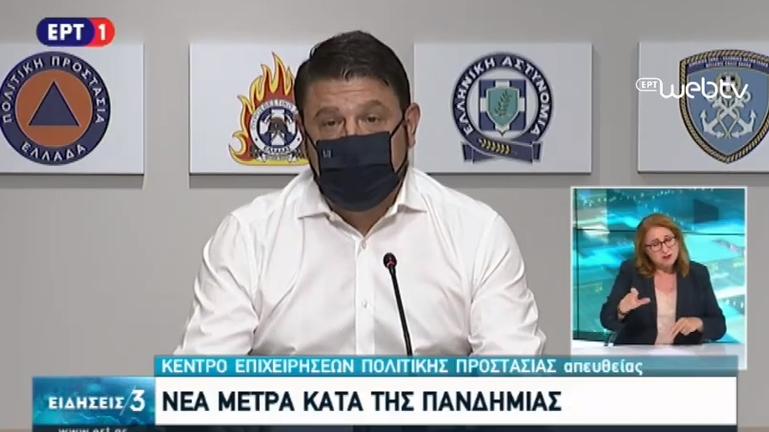 Ο υφυπουργός Πολιτικής Προστασίας Νίκος Χαρδαλιάς ανακοίνωσε τα νέα μέτρα για τον κορωνοϊό.