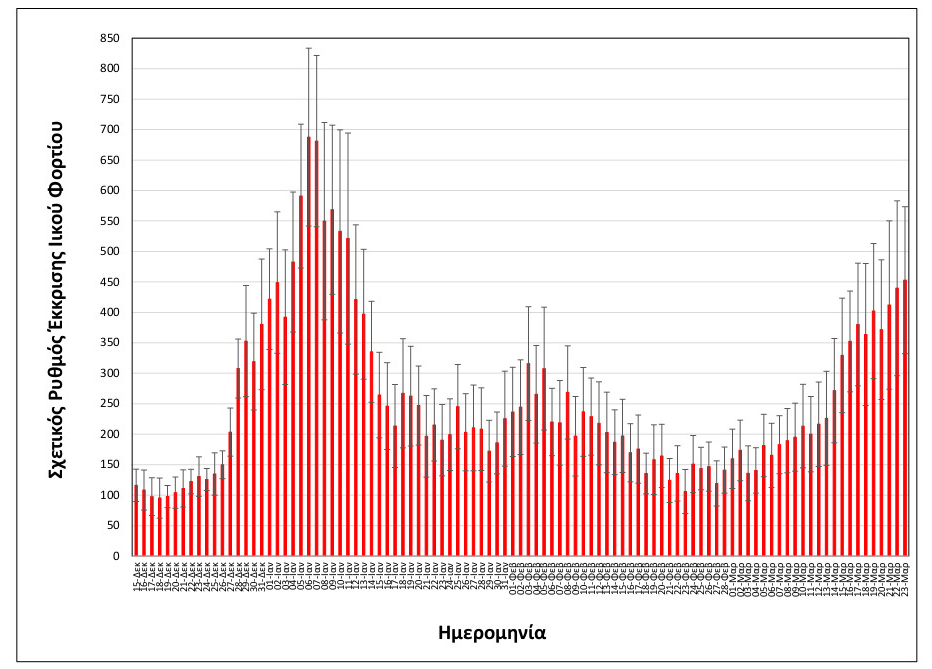 Συγκεκριμένα, στα δείγματα που λαμβάνονται καθημερινά στην είσοδο της Εγκατάστασης Επεξεργασίας Λυμάτων Θεσσαλονίκης, αναφορικά με τις εξορθολογισμένες τιμές σχετικής έκκρισης ιικού φορτίου, η μέση τιμή των δύο πιο πρόσφατων μετρήσεων, δηλαδή της Τρίτης 22/03/2022 και της Τετάρτης 23/03/2022 είναι: