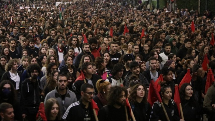 Σε εξέλιξη είναι η μαζική πορεία για τα 50 χρόνια από την εξέγερση του Πολυτεχνείου. Φοιτητικοί σύλλογοι με σύνθημα «οι εξεγέρσεις δεν μπαίνουν στα μουσεία, εμπρός για της γενιάς μας τα Πολυτεχνεία», φορείς, ο ΣΥΡΙΖΑ-ΠΣ, το ΠΑΣΟΚ-ΚΙΝΑΛ, το ΜέΡΑ25, κόμματα κι οργανώσεις της εξωκοινοβουλευτικής Αριστεράς, εργατικά σωματεία και συλλογικότητες του αντιεξουσιαστικού χώρου συγκεντρώθηκαν αρχικά στην πλατεία Κλαυθμώνος και στο άγαλμα του Κολοκοτρώνη και κατευθύνονται προς την αμερικανική πρεσβεία.
