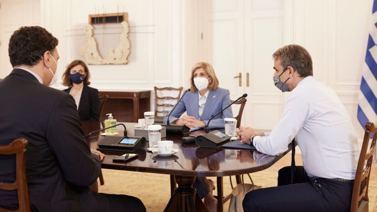 Φτάνουμε πια στο τέλος αυτής της πρωτοφανούς υγειονομικής κρίσης την οποία κληθήκαμε να αντιμετωπίσουμε σημείωσε ο κ. Μητσοτάκης, συναντώντας στο Μέγαρο Μαξίμου, την Ευρωπαία Επίτροπο για θέματα Υγείας και Ασφάλειας Τροφίμων, Στέλλα Κυριακίδου.