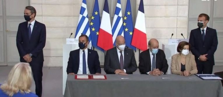 Η νέα ελληνογαλλική σχέση στηρίζεται σε δύο πυλώνες. Ο ένας είναι η συμφωνία στρατηγικής συνεργασίας, η οποία και υπογράφηκε από τους υπουργούς Εξωτερικών Γαλλίας και Ελλάδος, Ζαν-Υβ Λε Ντριάν και Νίκο Δένδια, αντιστοίχως.