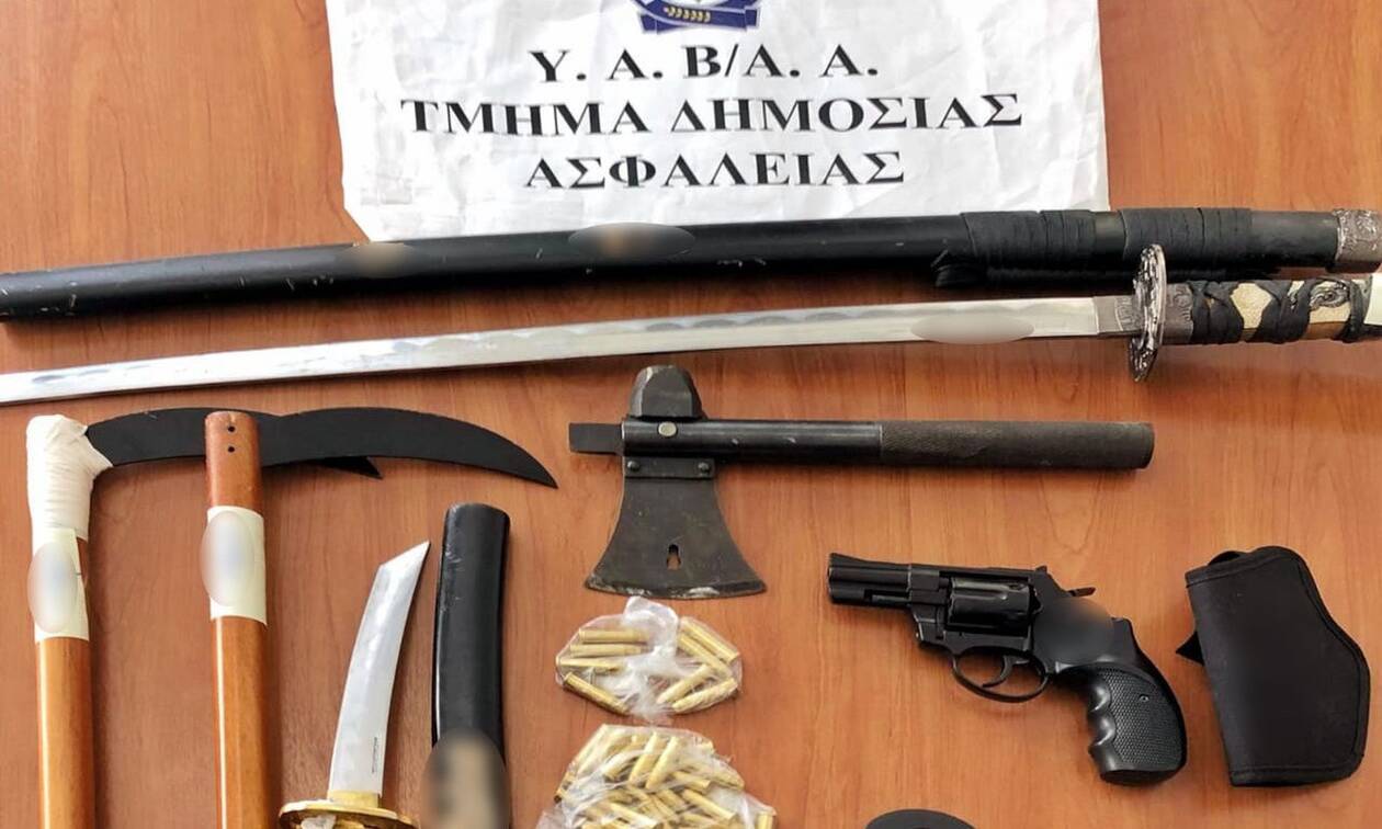 Οπλο, σπαθιά, τσεκούρια, μέχρι και αυτοσχέδια δρεπάνια, βρέθηκαν μετά τις έρευνες της ΕΛΑΣ, στο σπίτι του δράστη του αιματηρού επεισοδίου στη Νέα Ερυθραία.