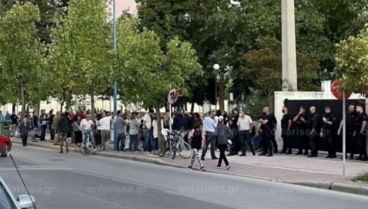 Συγκέντρωση αντιεμβολιαστών πραγματοποιήθηκε έξω από τα γραφεία της Ιεράς Μητροπόλεως Λαρίσης και Τυρνάβου ενάντια στην πρωτοβουλία της Μητρόπολης να συνεργαστεί με την 5η Υγειονομική Περιφέρεια και κινητή μονάδα εμβολιασμών, ώστε να γίνονται εμβολιασμοί έξω από τον ναό.