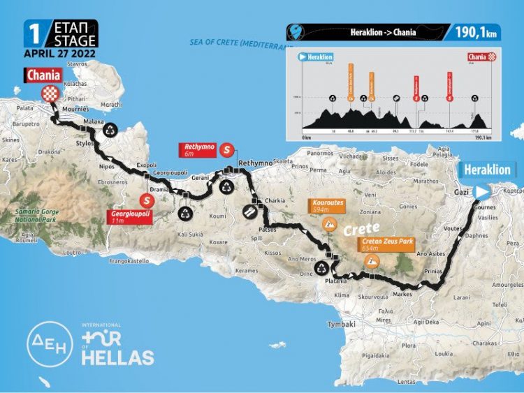 Ένα απαιτητικό ετάπ που κινείται στις παρυφές των Λευκών Ορέων της Κρήτης είναι το πρώτο του ΔΕΗ Ποδηλατικού Γύρου Ελλάδας.