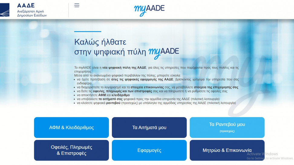 Νέα ηλεκτρονική πύλη στο κυβερνητικό “νέφος”, έρχεται να προστεθεί –αλλά και να ενοποιήσει- μαζί με τις άλλες ηλεκτρονικές εφαρμογές της ΑΑΔΕ (gsis.gr και aade.gr) που ήδη λειτουργούν και εξυπηρετούν τους πολίτες.