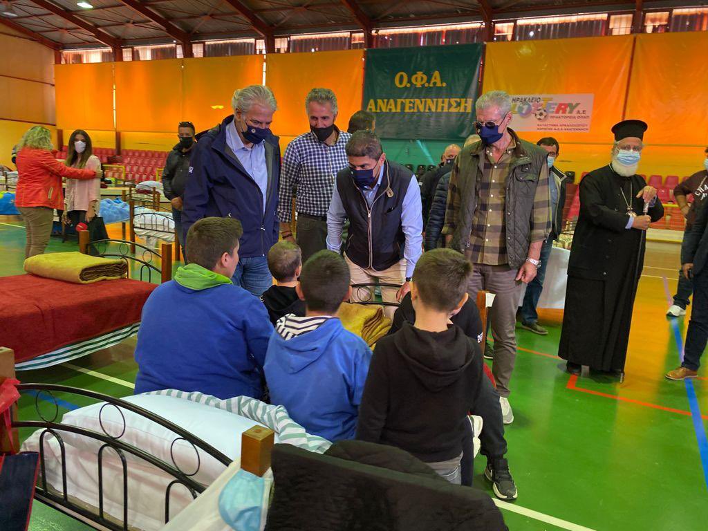 Αυτή την ώρα ο υπουργός και ο υφυπουργός Κλιματικής Κρίσης και Πολιτικής Προστασίας, συνοδευόμενοι από τον κ. Αυγενάκη και τοπικούς φορείς, επισκέπτονται το εκθεσιακό κέντρο Αρκαλοχωρίου, όπου πληγέντες φιλοξενούνται σε σκηνές, αλλά και τον χώρο απέναντι στο εκθεσιακό κέντρο που προετοιμάζεται, προκειμένου να τοποθετηθούν κοντέινερ. Ο κ. Στυλιανίδης και ο κ. Τουρνάς βρέθηκαν νωρίτερα και σε δομές που έχουν στηθεί και φιλοξενούν σεισμόπληκτους σε αθλητικούς χώρους, όπως στο Κλειστό Γυμναστήριο Αρκαλοχωρίου.