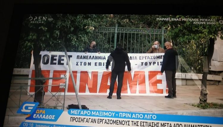 “Οι εργαζόμενοι στην εστίαση και στον τουρισμό έχουν βιώσει κατά κόρον τα τραγικά -και στην αγορά εργασίας- αποτελέσματα της πανδημίας και σήμερα οι τρεις συνδικαλιστές προχώρησαν σε μία συμβολική κίνηση τηρώντας όλα τα υγειονομικά πρωτόκολλα, έχοντας μαζί τους νόμιμη άδεια μετακίνησης ως εκλεγμένα μέλη του ΔΣ της Ομοσπονδίας και του ΕΚΑ. Μία Ομοσπονδία, η οποία, σεβόμενη τα περιοριστικά μέτρα λόγω covid, ανέστειλε την 24ωρη απεργία που είχε αποφασίσει για τις 10 Νοεμβρίου και την απεργιακή της συγκέντρωση.