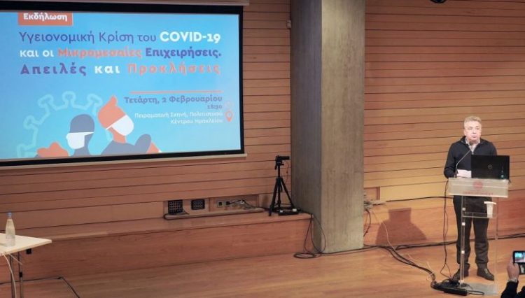 Την εκδήλωση «Υγειονομική Κρίση του COVID-19 και οι Μικρομεσαίες Επιχειρήσεις. Απειλές και Προκλήσεις» οργάνωσε η Περιφέρεια Κρήτης σε συνεργασία με το Ελληνικό Μεσογειακό Πανεπιστήμιο και το Ινστιτούτο Μικρών Επιχειρήσεων της ΓΣΕΒΕΕ, στην Πειραματική Σκηνή του Πολιτιστικού Κέντρου Ηρακλείου σε συνεργασία με το Εμπορικό και Βιομηχανικό Επιμελητήριο Ηρακλείου, τις Ομοσπονδίες Επαγγελματιών, Βιοτεχνών και Εμπόρων Κρήτης και την Ομοσπονδία Εμπορικών Συλλόγων Κρήτης. Οικοδεσπότης ήταν ο ΑντιπεριφερειάρχηςΕπιχειρηματικότητας, Εμπορίου, Καινοτομίας και Κοινωνικής Οικονομίας Αντώνης Παπαδεράκης, ενώ χαιρέτισαν ο Περιφερειάρχης, ο Πρόεδρος της ΓΣΕΒΕΕ, ο Πρύτανης του ΕΛΜΕΠΑ Νίκος Κατσαράκης, η Προϊσταμένη της Διαχειριστικής Αρχής Μαρία Κασσωτάκη και ο Πρόεδρος του ΕΒΕ Ηρακλείου Μανώλης Αλιφιεράκης. Ο καθηγητής του ΕΛΜΕΠΑ Χρήστος Φλώρος παρουσίασε την έρευνα που έκανε το Εργαστήριο Λογιστικής και Χρηματοοικονομικής Διοίκησης (LAFIM) του Τμήματος Λογιστικής και Χρηματοοικονομικής του Ελληνικού Μεσογειακού Πανεπιστημίου (ΕΛΜΕΠΑ). Επίσης, ο Σταμάτης Βαρδαρός, Υπεύθυνος Στρατηγικού Σχεδιασμού του Ινστιτούτου Μικρών Επιχειρήσεων της ΓΣΕΒΕΕ θα παρουσιάσει τα ευρήματα πανελλήνιας έρευνας για τις μικρές επιχειρήσεις με ειδική αναφορά και στην Κρήτη.