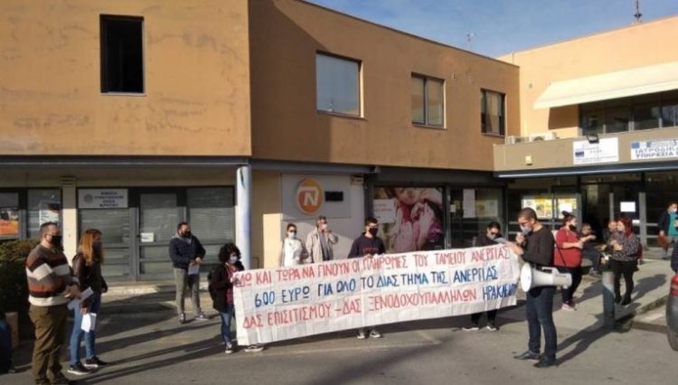Κινητοποίηση στην Περιφερειακή Διεύθυνση Κρήτης του ΟΑΕΔ πραγματοποίησαν η ΔΑΣ Ξενοδοχοϋπαλλήλων και η ΔΑΣ Επισιτισμού – Τουρισμού Ηρακλείου έπειτα από  κάλεσμα της Ένωσης Ιδιωτικών Υπαλλήλων Ηρακλείου προς τους εποχικούς εργαζόμενους.